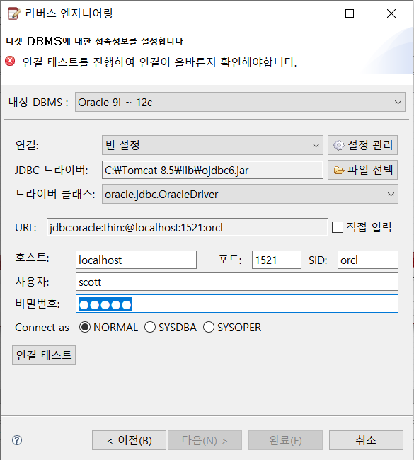 연결 설정을 리버스 엔지니어링과 같이 설정한다