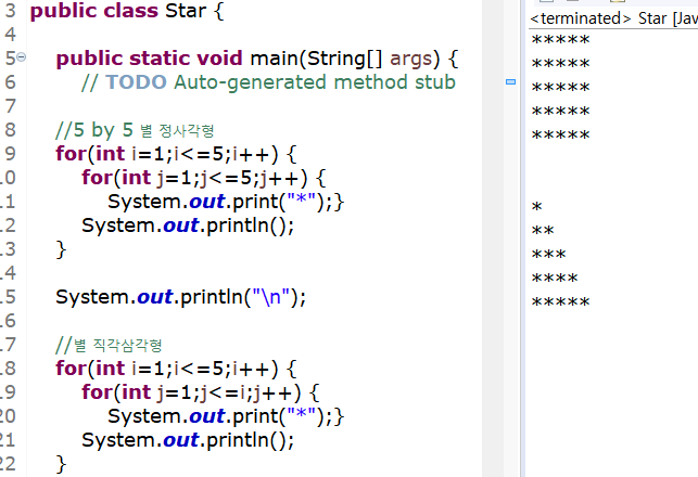 변수 i, j에 대해 var를 붙여주지 않고 (선언하지 않고) 사용하게 된다면 이 변수는 전역변수 처럼 사용된다는 것을 유의!