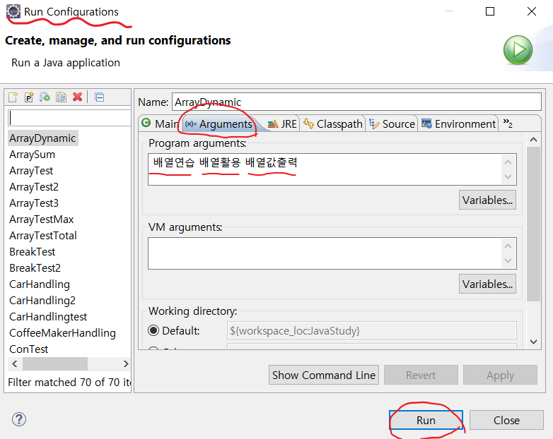 - main메소드의 배열에 파라미터 전달하기