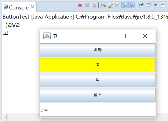 * 1.이벤트 발생시킨 컴포넌트 이름을 알 수 있다(시작, 고,,) -> e.getActionCommand()