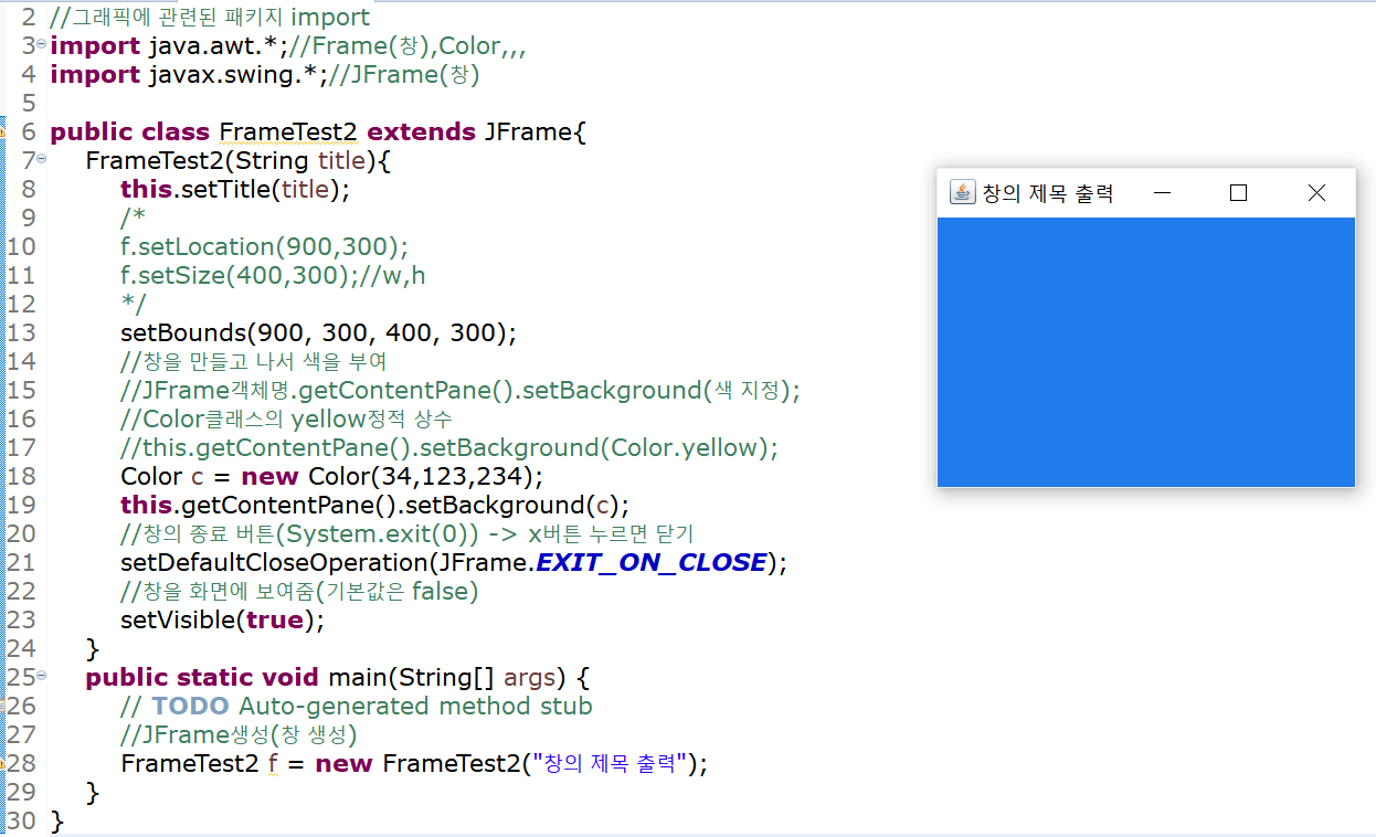 //setDefaultCloseOperation(JFrame.EXIT_ON_CLOSE);과 기능은 똑같음