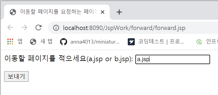 a.jsp로 페이지는 이동했지만 url창의 경로는 처음 요청받았던 move.jsp로 나와있다