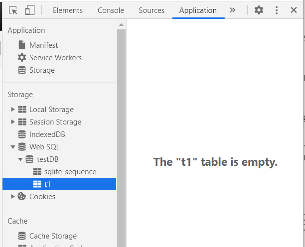 크롬브라우저 - 요소검사 에서 testDB t1테이블이 생성됐음을 알 수 있다.